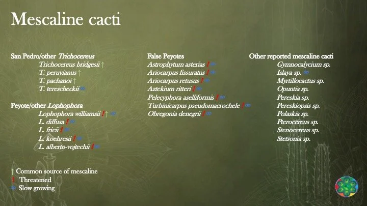 Dr Liam Engel explains the psychedelic contained in San Pedro and Peyote cacti; mescaline, and summarises how to prepare and consume psychedelic cactus, as well as their relative potency.